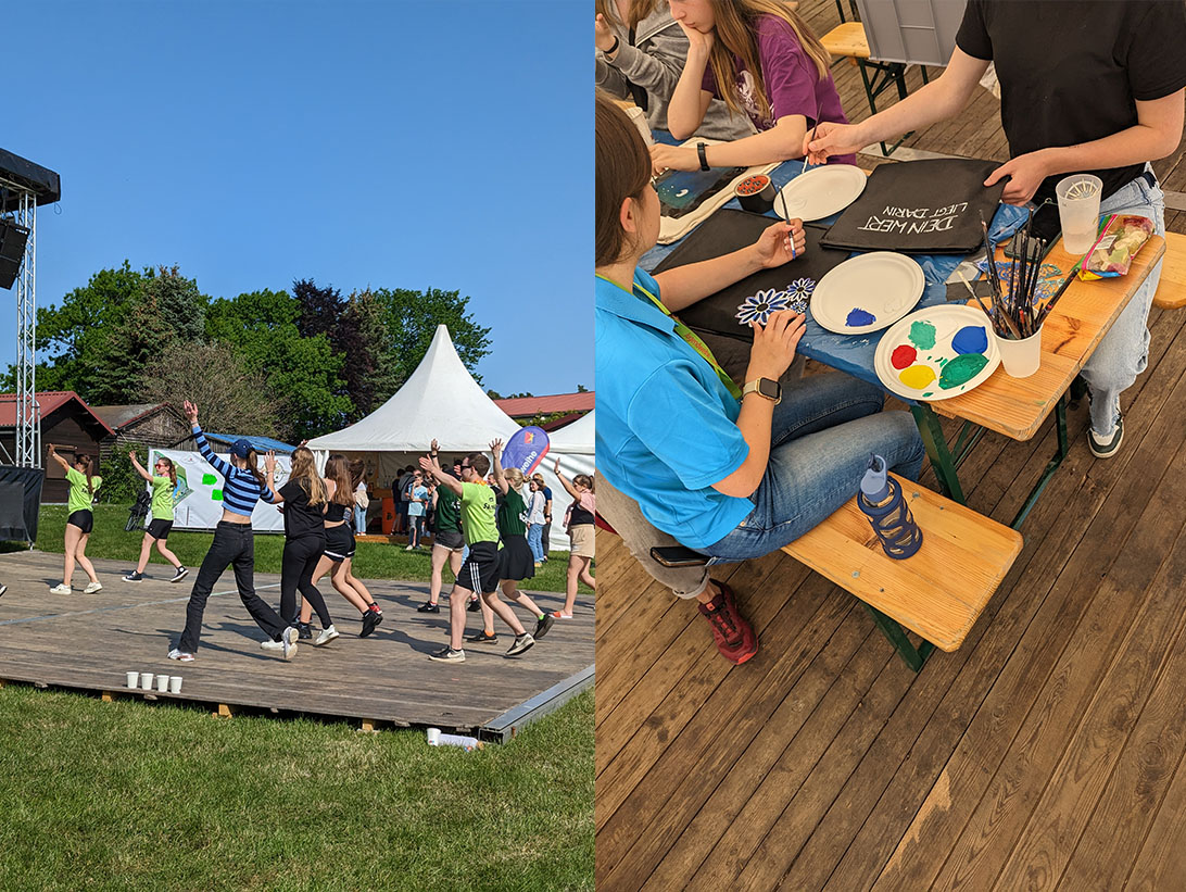 Mehr als 1.000 jugendliche Teilnehmer erleben mit unserem Verband seit 1997 jährlich zu Pfingsten 4 ereignisreiche Tage mit Action, Spiel und Spaß im Bungalowdorf des Schullandheims Olganitz. Die Jugendlichen können zahlreiche Aktivitäten nutzen, z.B. Workshops zu Demokratie, Graffiti, Kochen & Backen und Styling oder sportliche Angebote wie Human Table Soccer oder Bumperball. Die Abende beginnen mit Bands, Bühnenprogramm und Camp-Disco, am Lagerfeuer oder bei einer Lesung klingen sie stimmungsvoll aus. Mehr als 100 Ehrenamtliche aus unserem Verein und dem Jugendverband gestalten das Camp inhaltlich und organisatorisch.